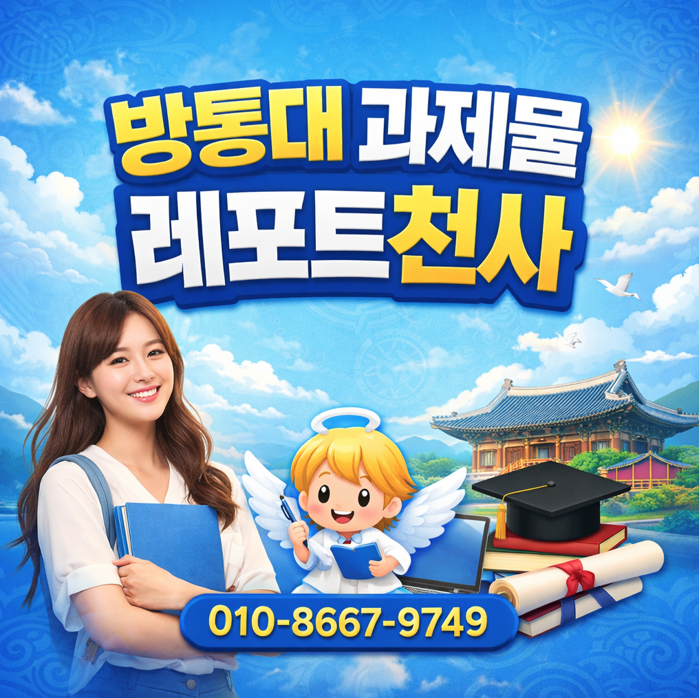 결국 중요한 건 끝까지 과정을 이어가는 것이라고 생각해요. 무리하게 혼자 해결하려다가 중간에 포기하는 경우도 많기 때문에, 상황에 맞는 방법을 선택하는 것이 더 효율적이라고 느껴졌습니다. 방통대 과제물로 고민하고 계신다면 검증된 업체를 통해 안정적으로 준비하는 것도 충분히 현실적인 선택이 될 수 있습니다.